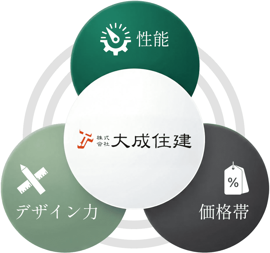 あなたが提案するその家を、あなた自身も「住みたい」と心から思えますか? 大成住建の家づくりに、嘘や妥協はありません。 目を奪うデザイン、長く住み継ぐための高性能、そして手が届く価格。 この3つが高次元で調和した「最高に、いい家」だからこそ、私たちは胸を張ってお客様へお届けできるのです。 作り手が誰よりもその商品に惚れ込み、熱狂する。 「これなら間違いない」と言える自信があるから、仕事はもっと楽しくなる。 そんな誇りに満ちた家づくりを、ここで一緒に始めませんか。